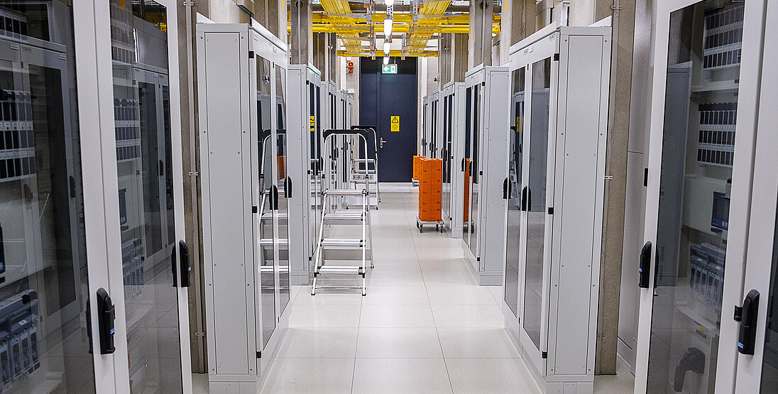 In an internal, production-related part of the building, the existing IT systems were accommodated in a new environment in new IT racks in a cold cycle enclosure to minimize energy costs. In addition, the redundant UPS systems were again cross connected to the power distribution systems via several ATS. The air conditioning systems are designed with an N+1 redundancy.