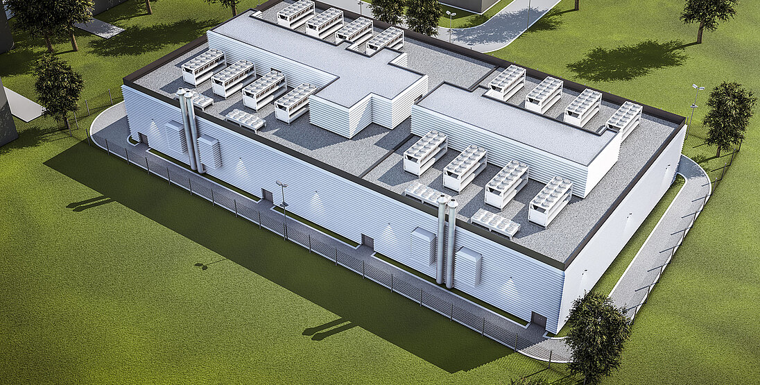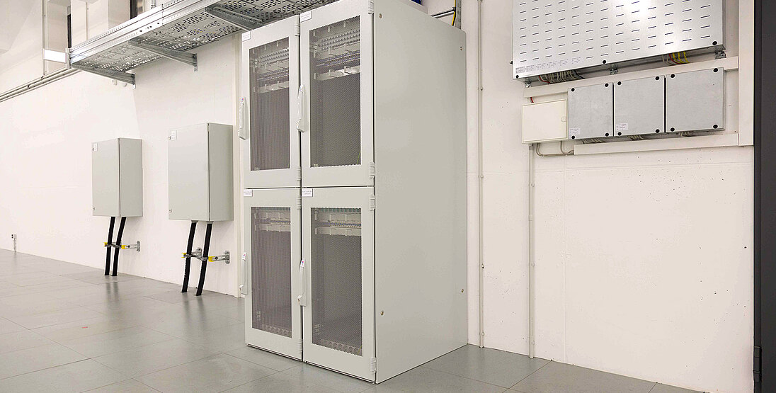 The consulting services included suitable concepts for the air conditioning and the power supply, which is secured several times, including the connection to a NEA as well as the IT racks with enclosure.